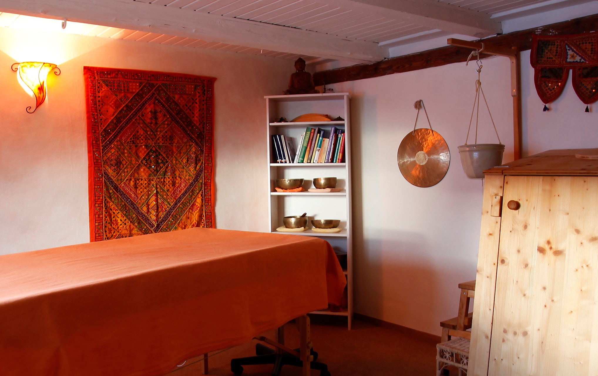 Klangmassage mit Körpermonochord und Klangschalen, ayurvedische Kopf und Fußmassage (alles am bekleideten Körper)